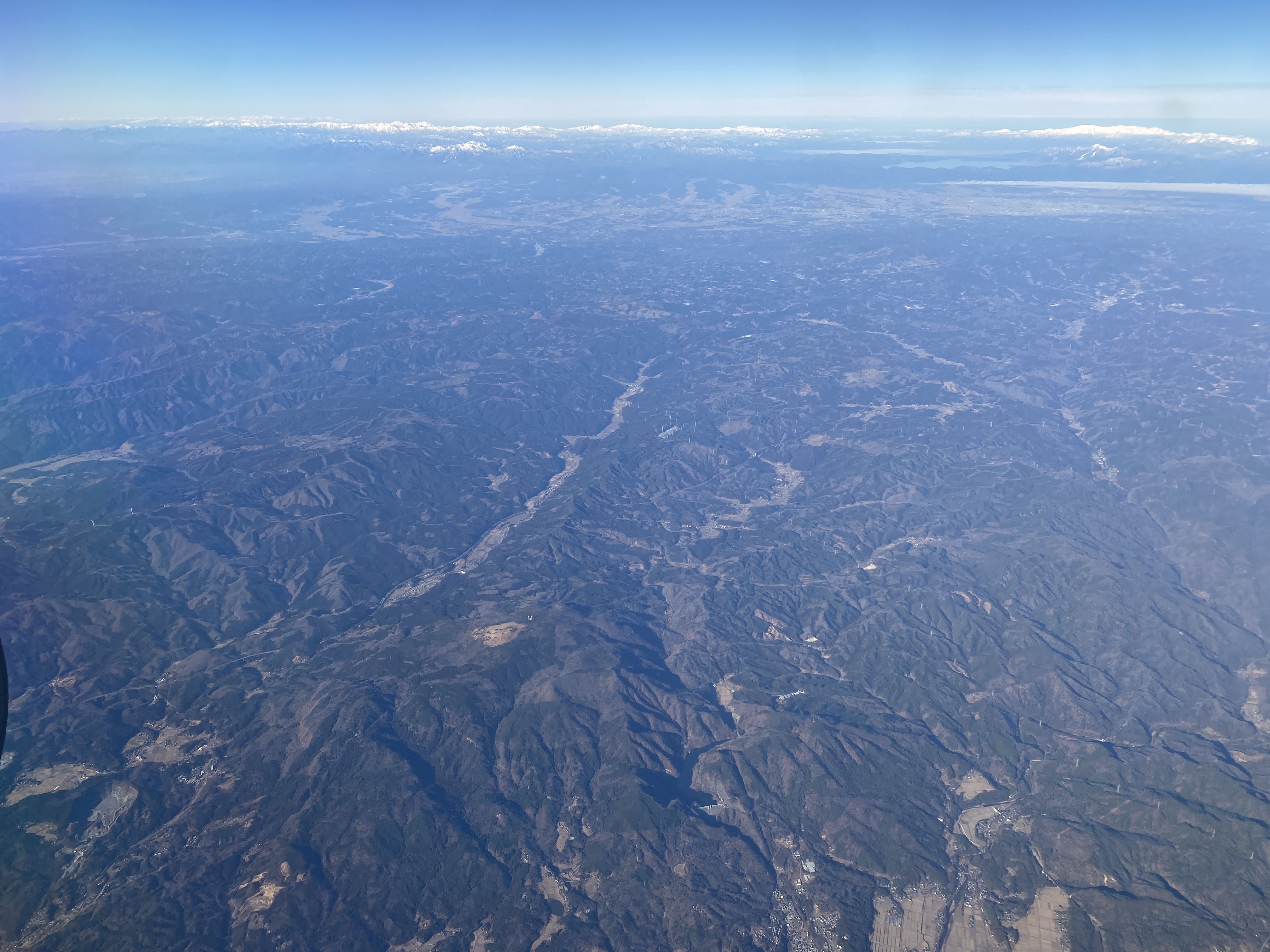 Der Flug dauert ca. 90min bis nach Sapporo, der Hauptstadt von Hokkaido und wie man auf den Fotos sieht, wurden die Schirme nicht benötigt. Das schöne Wetter ermöglichte auch bis zum Nordende von Honshu eine schöne Aussicht.