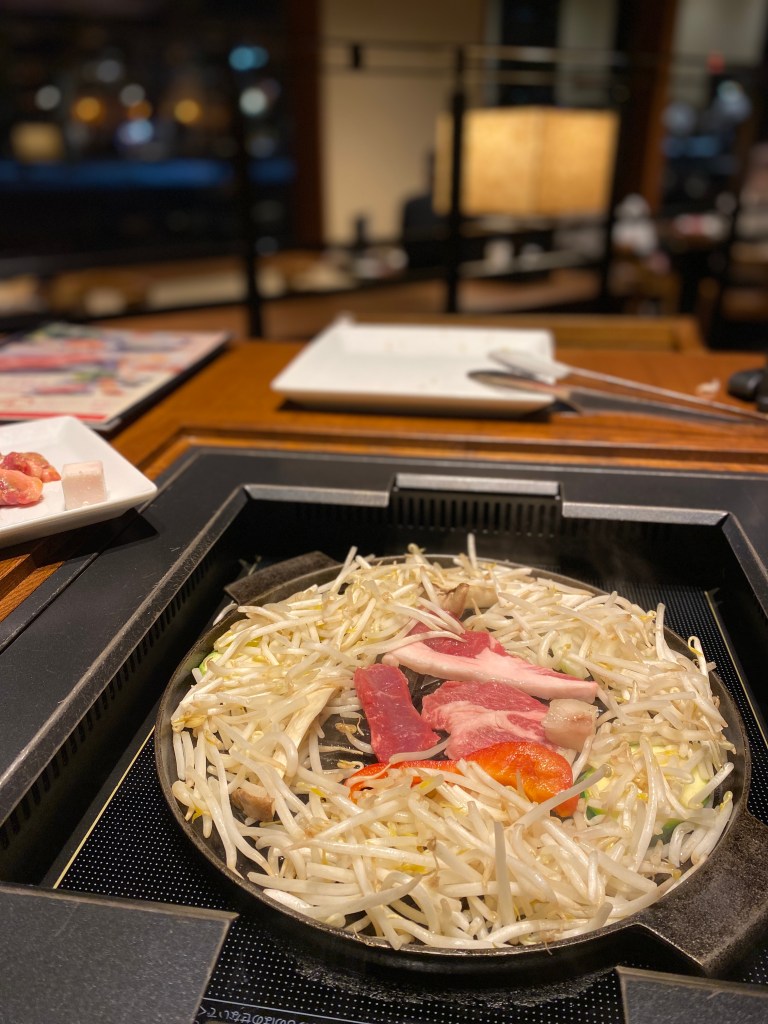 Das Essen dort war sehr fein und empfehlenswert, vor allem auch die perfekte Organisation und Technik mit dem Grill im Tisch und die gute Qualität von Fleisch, Gemüse und Beilagen. Der Service wurde durch Roboter unterstützt. Der Transport der Speisen von der Küche zum Servicepersonal erfolgte mit Robotern.