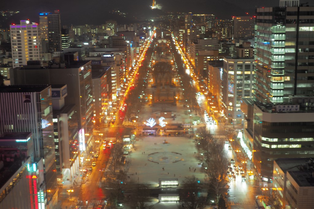 Nun geht es jedoch auf den Sapporo Tower um das nächtliche Panorama über die Stadt zu geniessen.