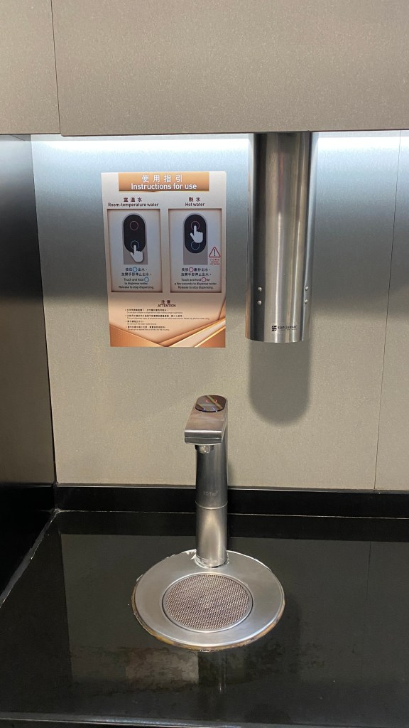 Im Flughafen findet man sich gut zurecht, und es gibt dort ein paar Besonderheiten, die man hier nicht kennt, wie Gratisduschen und Spender für heißes Teewasser. Ausgerüstet mit Thermoskanne und Teeblättern kann man sich so Tee einfach zubereiten. Das sieht man auch in Festlandchina.