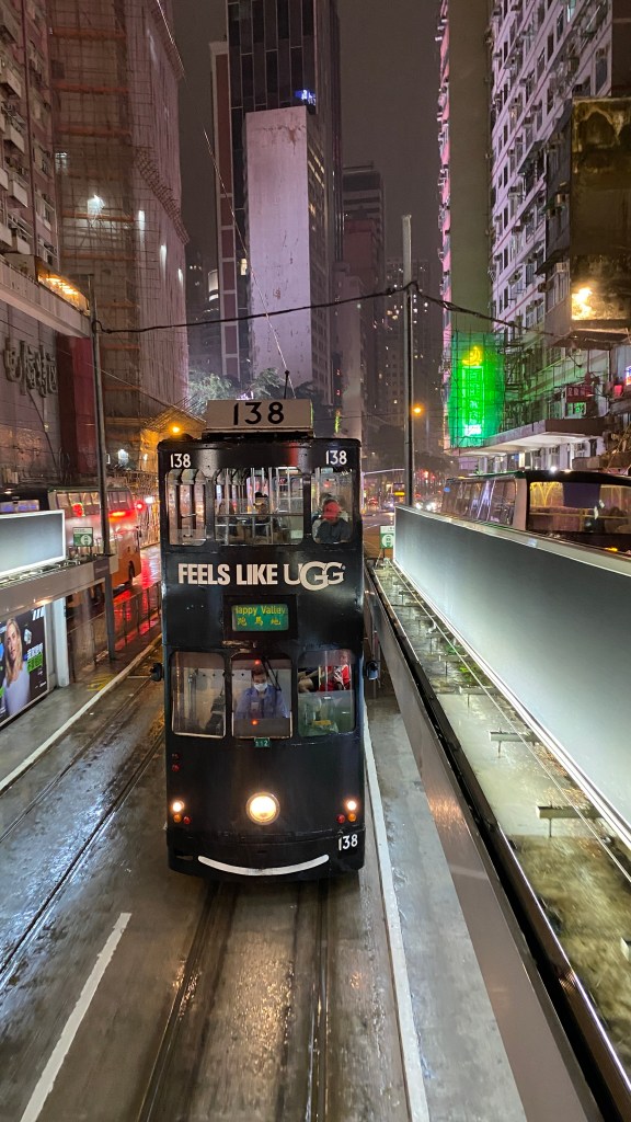 Ein in Hongkong beliebtes Transportmittel sind die doppelstöckigen Trams, mit denen man die Stadt entdecken kann. Eine Fahrt, unabhängig von der Entfernung, kostet ca. CHF 0.25. Man hat dort besonders von oben eine gute Aussicht und kann so die spannenden Ausblicke während der Fahrt geniesen. Ein bisschen Abenteuer gibt es auch dabei, die Haltestellen sind recht schmal und die Fenster bei Wind und Wetter offen.