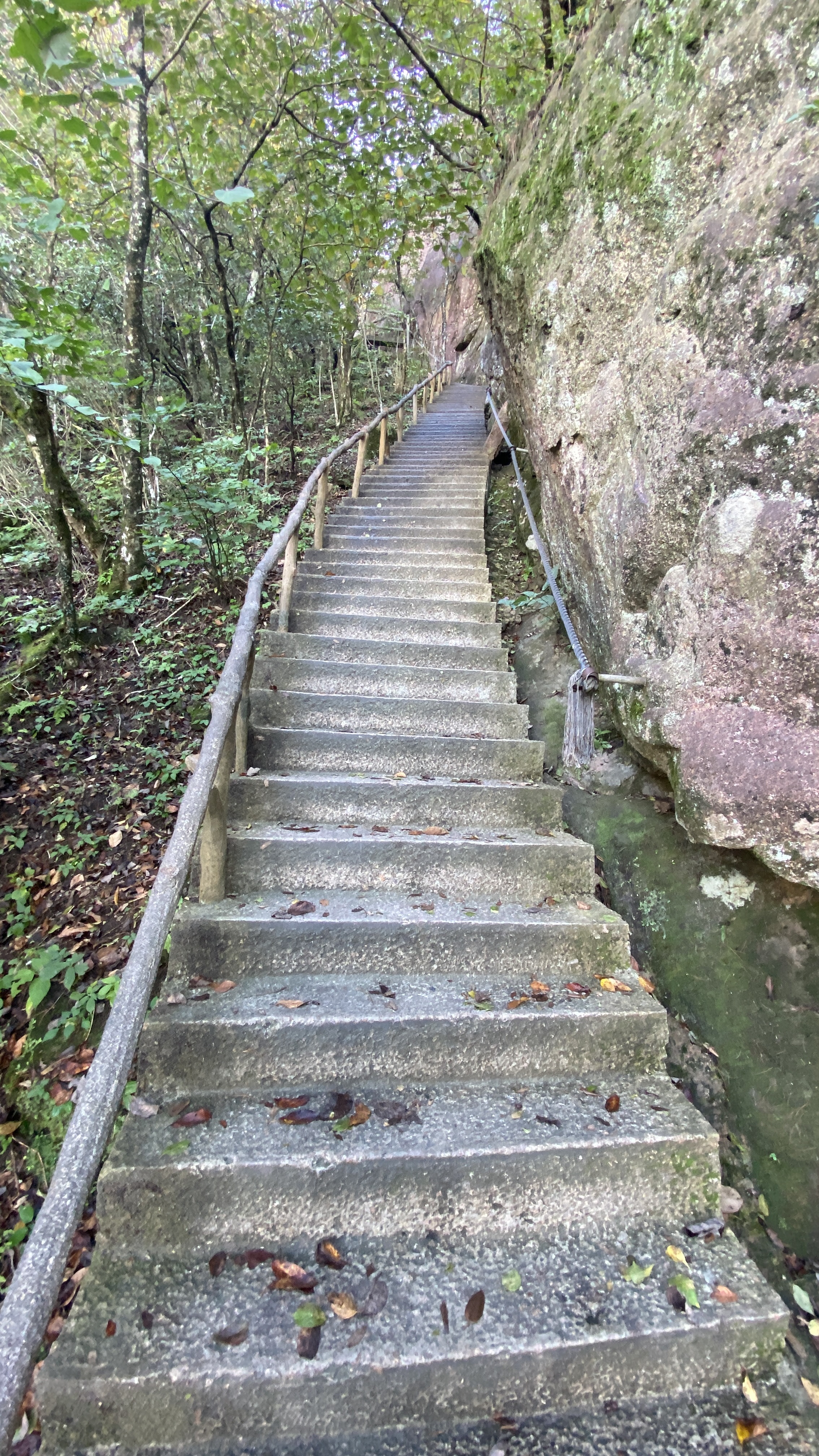 Am nächsten Tag begann das eigentliche Abenteuer: Wir stiegen in einen Canyon ab – über steile Treppen, immer mit Geländern oder Seilen gesichert. Teilweise geht es steil bergab, und einige Reisende riskierten für ein Selfie fast zu viel. Je tiefer es ging, desto wärmer wurde es. An Engstellen kam es zu kurzen Staus, was bei der Menge der Besucher kaum zu vermeiden war. Schließlich erreichten wir die Mittelstation der Seilbahn.